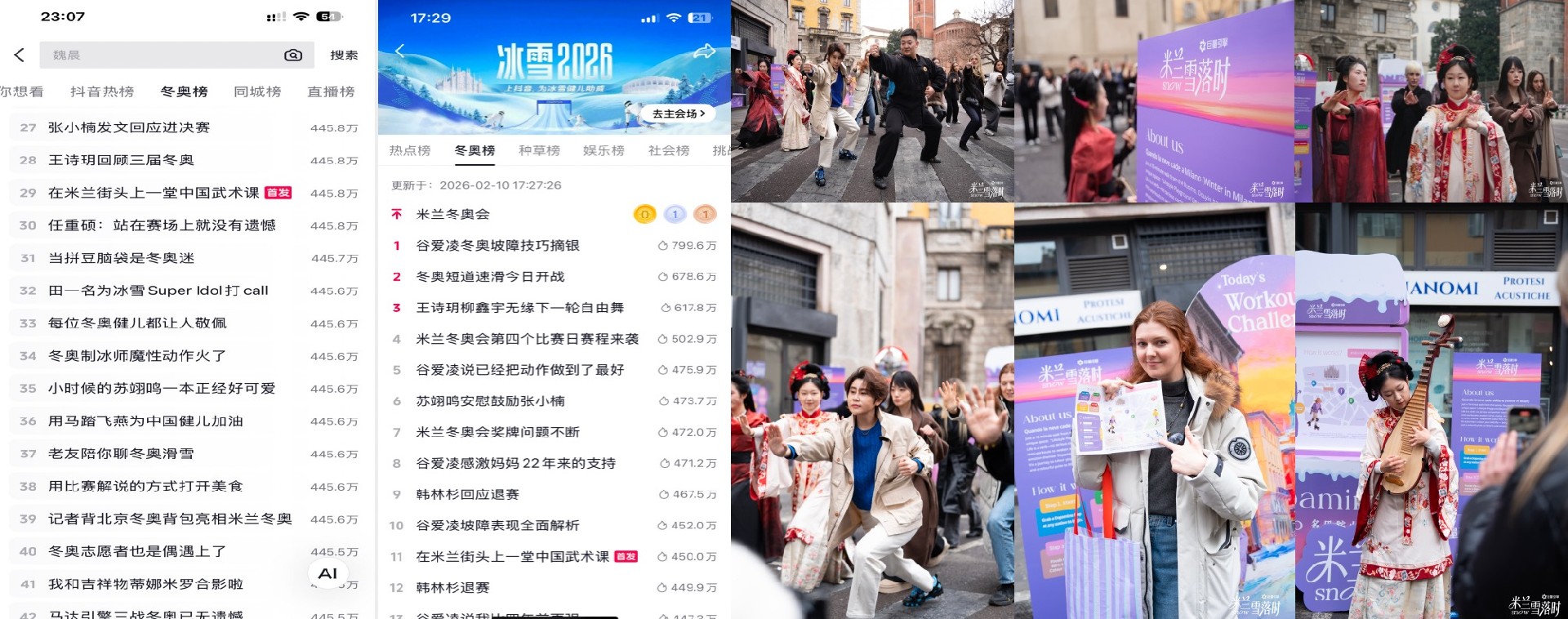 《 环球日报 》 当2026年冬奥会的序曲在米兰奏响,全世界的目光投向阿尔卑斯山下的雪道与冰场。但对于品牌而言,一个更本质的问题正在浮现:当传统的赛事赞助、金牌绑定成为红海,营销还能从哪里找到新的突破口? 对于此,巨量引擎冬奥泛赛事玩法大事件「米兰雪落时」,在米兰大教堂旁的多巴胺街道上,给出了一个轻盈而有力的回答。它没有追逐赛场内的荣耀瞬间,而是在赛场之外,用一场全民参与的多巴胺Citywalk,带着水之蔻、橘朵、INTO YOU等品牌,走进了全球年轻人的视野与生活。这不再是一次单纯的赛事借势,而是一场关于“如何重新定义冬奥叙事”的营销实验。 在巨量引擎,每一场赛事都有独特的面孔,释放着不同的魅力。超过6.4亿的巨量引擎体育人群,不断拓宽着赛事的想象边界——他们不仅是观众,更是参与者、共创者。多元的巨量引擎赛事内容,正构建起品牌营销破圈的新方向:打开全民共情的出口、助推声量破圈、激发圈层消费的热情。而「米兰雪落时」,正是敏锐地捕捉到这片沃土,将冬奥会的诗意共鸣、全民冰雪运动热潮,与意大利主办地的文化肌理深度融合,开辟出一条赛场之外的营销“新雪道”,活动全网总曝光达4亿, #米兰雪落时 话题累计曝光达1.6亿,站内热点整体曝光达1.3亿。 Part 1 读懂“动词”:从观赛到入场,一场关于用户情绪的深度洞察 夜晚的米兰,雪落无声。但在巨量引擎,一场关于“动词”生活的讨论正热烈上演。用户们分享着夜爬的畅快、滑板的自由、街角跑步的偶遇。这些碎片为巨量引擎注入日常活力,也构成了当代年轻人对生活的真实注解:生活不是一个名词,不是一个静止的终点,而是一个动词,一种正在发生的状态。 「米兰雪落时」的起点,正是源于对新一代用户的深度共情。汇聚超6.4亿体育用户,巨量引擎正呈现出比“观赛”本身更开阔的精神版图:人们既为赛场上的荣耀瞬间喝彩、被运动的激情所感染;也渴望沉浸式地感知主办国的城市文化肌理,渴望在冰雪季用自己的方式,留下一段可供回忆的仪式感。 基于用户洞察,「米兰雪落时」确立了一个轻盈而深刻的核心主张:“生活是个动词”——它不再将冬奥视为遥远的景观,而是让每个用户融入其中,创造连接点,转化为自己故事的一部分。这种转向,也为品牌提供了一种全新的可能:不再只是赛事的旁观者,而是用户动感生活的陪伴者。 在「米兰雪落时」IP的核心主张下,情绪短片与情绪海报,如同一声轻柔而有力的发令枪,以展示与共情的方式,让“生活是个动词”从一个概念,落地为千万种具体的心跳。数百位巨量引擎用户真实生活瞬间——雪中滑行的自在、达成挑战后的沸腾、专注于热爱的眼神……共同拼贴出“动词”生活的鲜活样貌。冰雪运动与生活哲思巧妙缝合,“滑雪的浪漫,是雪不说话,它只接住我”、“原来锋利的棱角,是群山预留的握手处”……如同散落的诗笺,赋予运动以美学与情感。 同时,视频邀请函与#米兰雪落时 主话题同步上线,明确发出共创邀请:即日起至3月2日,上抖音搜索#米兰雪落时,分享你的生活「动」词瞬间,将鲜活的时刻抒写成诗。#我拍了拍雪说现在就出发 等热点话题同步引爆,鼓励用户不限地点、不限形式,分享自己的冰雪或户外运动瞬间。 Part 2 多巴胺街道:在赛场之外,铺就一座生活运动场 冬奥期间,当世界聚焦于赛场内的巅峰对决,「米兰雪落时」IP却在米兰大教堂旁,完成了一次惊艳的场景魔法。一条“多巴胺街道”悄然铺开——和阿尔卑斯山下的雪坡不同,这里没有竞赛的紧张,只有热气腾腾的生活感。 开街仪式,是一场东方与西方的碰撞。“冰雪大魔王”@王濛空降米兰街角,与近10位达人一起,以中国武术之姿划破冬日晨雾。@胖二胡PandaErhu 一曲《黄种人》的旋律中,一招一式,是东方风骨的当代书写;一静一动,成就中意文化的交融。武术博主 @DAVID FITNESS 在米兰大教堂街头带来精妙绝伦的武术表演,并在现场亲身教学简单动作,吸引外国友人共同感受中国式的武术浪漫。这场活动迅速在巨量引擎发酵,#在米兰街头上一堂中国武术课 话题登上冬奥榜TOP11,霸榜时长96h,#用马踏飞燕为中国健儿加油 话题登上冬奥榜 TOP36,完成了一次现象级的文化输出与情感破圈。 运动是全人类的语言,在这条街上,不同肤色的人们用身体语言完成了无需翻译的对话。 2月7日至9日,冬奥开幕式后的首个周末,米兰大教堂周边10分钟步行区被染上“多巴胺的色彩”。许多用户手持「多巴胺寻路图」,在米兰街头的五大站点,通过完成一系列10-30秒的轻运动动作——伸展、快走、摸高、筷子等小游戏,在街区中收集散落的彩色Pin,兑换惊喜礼品。这一设计,诠释了“生活是个动词”的要旨:动作不必宏大,关键在于让身体和心情“动”起来。一路都是小色块、小动作,用热气腾腾的活力为冬日低饱和的米兰街头添上一层层色彩。 而品牌,成为这条街最自然的“居民”。橘朵邂逅百年意式花圃,“闻香而动,色彩巡游”——小花车载着香气与口红穿行于米兰街巷,全城巡游的不仅是花香,更是品牌故事的诗意流淌。INTO YOU与百年意式餐厅联名,“唇间炙热,笑意绽放”——联名餐品承载着一抹唇色的故事,让品牌融入意式生活的日常肌理,每帧笑意都是产品的生动注解。水之蔻则以专业身体护理关注每一寸肌肤细节——从赛场到街巷,在线上共鸣中凝练可