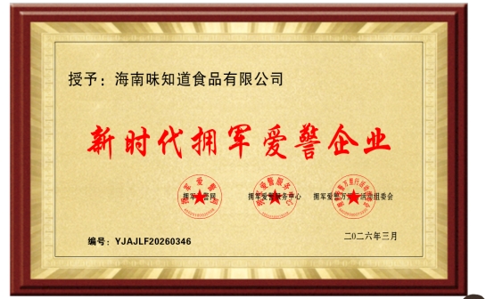琼味匠心传大爱 拥军爱警显担当——海南味知道食品有限公司荣膺“新时代拥军爱警企业”称号