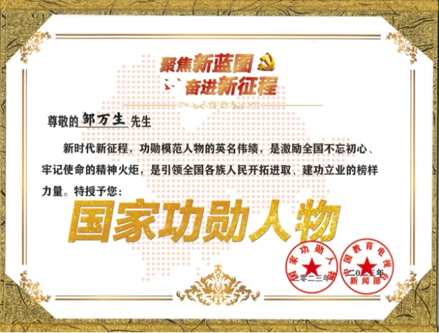 《 环球日报 》 在新时代中医药传承创新发展的壮阔征程中,有一位矢志不渝的医者,他积极响应国家号召,以赤子初心为舵,以奋进拼搏为桨,用毕生实践深刻诠释 “厚德寄生、守正创新” 的精神内核,他就是中国诺金首席科研专家---邹万生。 邹万生,1961年5月出生于河南省信阳市,1981年毕业于河南大学数学系。 中国诺金首席科研专家; 创立了“未病”领域第一学说——“人体自组织理论”学说; 体悟系列保健(食)品发明人; 国际选择性医学研究博士; 中国“中医博士”(国务院国资委、中华人民共和国民政部、全国卫生人才职称评审组委会联合颁发); 高级营养师; 毛泽东养生饮食文化研究会副会长; 中国医疗保健国际交流促进会中老年保健专业委员会“治未病”健康指导中心“治未病”首席专家; 国医大师唐祖宣亲传弟子; 把“体悟”品牌打造成价值586.69亿元人民币; 主持国家卫生健康委“十四五”规划全国重点课题“体悟口服液控制慢性病研究”荣获科研成果一等奖; 主持国家卫生健康委“十四五”规划全国重点课题“诺金体悟抗新冠病毒活性研究”荣获科研成果一等奖。 分别获得中医岐黄派“岐黄大医”和中医本草派“医圣传人”称号,先后获得“国宝级生物科学家”、“人民榜样”(中央组织部颁发)、“七一荣誉勋章”(中央宣传部颁发)、“国家功勋人物”、“先锋企业家”(中央宣传部颁发)、“中国楷模贡献人物”(中央宣传部颁发)、爱心大使等各项荣誉200多项。并被中科院收录进2024年“奋进新征程 建功新时代”挂历第六月。 他是一个跨越学科、知识广博、思维敏捷的智力型人才;也是一个胆识过人、见解独特、勇于探索的创新型人才;同时又是有理想抱负、脚踏实地、勤于做事的开拓型人才。2010年和2012年,全球发行的著名期刊第一企业《财商》和《环球财富》分别以“邹万生 顺天爱人的中国龙”为题,分上篇和下篇对他做了深入全面报道,在业内引起巨大反响。可以说,在工作的每个重要阶段,都让人们通过他的骄人业绩,看到了他的卓越才干、精到见解和实干精神。 邹万生董事长在“世界贸易投资博览会”启动仪式的庆祝晚宴上与部分国家驻华大使共进晚餐 邹万生先生创建的中国诺金集团目前在保健品行业已是首屈一指,打造了“体悟”这个金字招牌。他与时俱进、刻苦钻研、拼搏进取,以强烈的事业心、高度的责任感和无私奉献的精神,为实现“治未病”做了大量富有成效的工作,充分履行了当代企业家的社会责任。具有很强的开拓创新精神、市场驾驭能力和组织领导能力,并取得了突出业绩。 在企业管理上,邹万生适时应变,不断探索适合企业的管理模式,始终在管理中秉承“顺天爱人”的博爱思想,坚持“胸有万竹,怀有众生,以情悟物,以德谋事”的做事方针,以其独有的智慧尽力为人们打开健康之门。企业在其领导下,以诚立信,不断向前发展,为当地的经济发展做出了突出贡献。 邹万生现任职: 毛泽东养生饮食文化研究会副会长 中国医药信息学会基层服务会常务副会长 中韩文化交流协会名誉会长 中华医学国际发展联合会特聘资深首席专家 中国行·中医健康管理工程首席健康指导专家 中国医促会中老年保健专业委员会治未病首席专家 中国中医名医名科名院品牌网全国理事会专家委员会首席专家 中国管理科学研究院学术委员会特约研究员 中华传统医学领军人物理事会副理事长 第二届国医大师讲经典全国巡讲团主任 《蓬勃发展的中国中医药事业》大型史册特邀主编 《国之魂宝中国国医大师录》执行编委 《华佗中藏经》执行主编 《世纪辉煌》执行主编 《张仲景伤寒论》主编 原全国政协副主席 民建中央第一副主席 张榕明接见邹万生董事长 2010年 引领健康产业发展十大杰出贡献人物 2010年 中国最受尊敬的十大诚信新闻人物 2010年 荣登第一企业《财商》杂志封面人物 2011年 全国先进爱国企业家 2012年 中国十大诚信企业家 2012年 荣登《环球财富》杂志封面人物 2012年 中国最具时代影响力企业家 2012年 品牌中国(保健品)行业功勋人物 2012年 第56届国际保健医学大会“世界传统医学杰出贡献奖” 2012年《中国报道》、国务院《正气中国》杂志年度封面人物 2012年 第八届中国东盟博览会传统医药国际论坛“国际传统医药优秀人才奖” 邹万生董事长在诚信中国节上接受CCTV记者访问 2013年 中国科学文化出版社《引领中国科技创新力量》封面人物 2014年 中华传统医学领军人物 2015年 中国骄傲·2015商界十大领军人物 2015年 中国诺金及个人被收入《中华人民共和国年鉴》 2015年 联合国千年发展目标公益活动组委会“千年发展目标杰出贡献奖” 2015年 《世纪辉煌》和《中华伟业》杂志封面人物 2015年 荣膺《世纪辉煌》世纪风云人物 2016年 亚洲品牌十大创新企业家 2017年 中国商界·行业十大杰出人物 2018年 中国中医药信息研究会基层医疗服务分会常务副会长 邹万生董事长参加“诚信中国节”行走于贵宾红毯 2018年 十大诚信企业家 2019年 品牌中国健康产业高峰论坛2019大健康产业诚信企业家称号 2019年 入编为庆祝中华人民共和国成立70周年出版的大型史册《大国中医•优秀中医药临床特技专家》 2019年 被第十二届中国管理科学大会授予“2019年度产学研协同创新先进个人” 2020年 在第三届中国民族品牌全