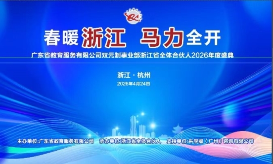 《 环球日报 》 春风送暖,万物向荣,富春江畔生机盎然;同心聚力,砥砺前行,教育征程初心如磐!4月24日,粤教服务浙江团队怀揣着对教育事业的热爱与坚守,满载着并肩奋斗的收获与感动,从全国各地奔赴山水秀丽的杭州富阳,共同迎来“春暖浙江・馬力全开”--广东省教育服务有限公司双元制事业部浙江省全体合伙人2026年度盛会! 粤教服务总经理曹建华首先致辞,向莅临现场的嘉宾解读了粤教服务平台的背景、优势、定位,以及粤教双元制项目的大致体系和未来规划,并提出希望与浙江社会各界强强联手,为国内教育事业做出应有的贡献! 粤教服务双元制事业部董事长兼CEO罗国歌对过往一年浙江团队名列前茅的业绩成果给予了充分的肯定,对浙江团队的决策力、执行力、凝聚力等大加赞许,并祝福浙江团队未来再接再厉,绽放异彩! 粤教服务双元制事业部联合创始人兼浙江省省代廖远芳对浙江团队的工作进行了简单的回顾及汇报,并与浙江省省代合伙人黄涛民、陆锋共同宣布浙江团队成立一周年志庆! 大会对到场的浙江各地市团队进行了表彰,对各个团队的综合表现给予了中肯的总结,增强了团队的凝聚力,并让团队伙伴深化认知:粤教服务双元制项目给有需要的家庭及孩子提供了另一条有价值、可落地的“轻资产留学+国际就业”赛道之重要举措及重大意义。 粤教服务国际部教学总监白鹤现场与粤教德国双元制项目两位在读的杭州富阳学生进行了连线,分享就读心得及未来规划。家长代表兼绍兴市级合伙人羊奇亚,随后分享了几位富阳孩子的成长历程,以及就读粤教德国双元制项目之后的重大变化,深切感谢粤教平台带给孩子们的福音。 本次大会得到了粤教服务总部以及浙江团队伙伴的鼎力支持,期间还穿插了精彩的节目表演及丰富的抽奖活动。与会嘉宾对本次大会的圆满举办表示高度认可和赞赏。 莅临本次大会现场的嘉宾还有:粤教国际综合部部长黄敏;浙江本地教育界的领导及校长;粤教服务双元制事业部的联合创始人、国际部的老师及粤教合伙人,以及关心学生就业问题的社会各界人士。 4月21-24日期间,于杭州富阳顺利举行”第七期粤教服务职业规划师培训营”,学员们纷纷表示收获满满,不虚此行,对未来即将从事的粤教事业更加充满信心! 4月25日,浙江省湖州市运营中心举行了隆重的开业仪式,粤教服务总经理曹建华、粤教服务双元制事业部联合创始人及浙江省省代廖远芳、联合创始人易妮及刘芋含、粤教服务国际部的老师们以及几十位浙江团队合伙人莅临现场共同庆贺!(佚名) |